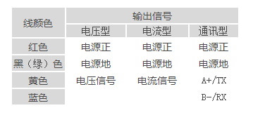 (2)若單獨購買變送器,變送器配套線線序分別為: